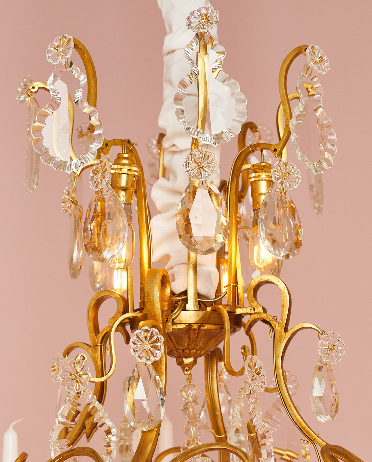 • De kroonluchter is gerestaureerd met behoud van kaarsen en LED verlichting verspreid door de kroonluchter.